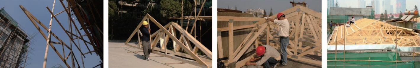 项目中将木桁架屋顶系统、木结构预制墙体系统作为装配式构件,与新建混凝土装配式建筑中结合使用。